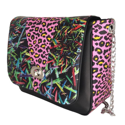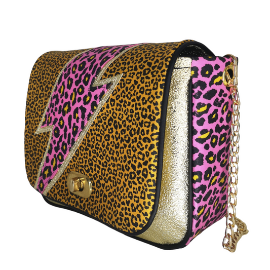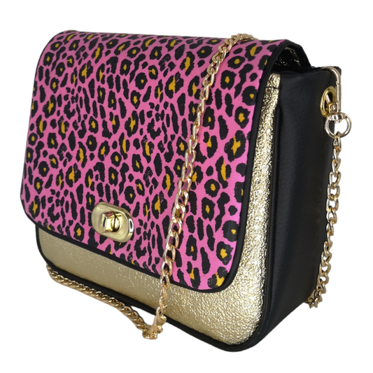 Sac à main bandoulière chaîne léopard fuchsia CRAZY LEO