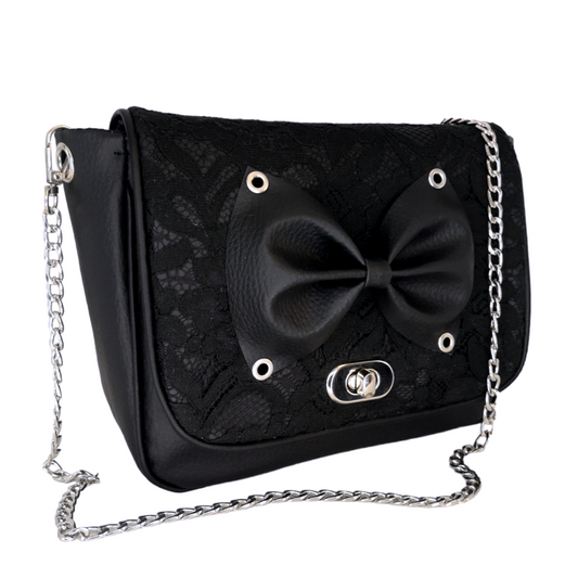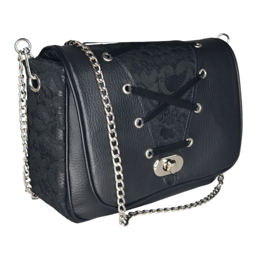 Sac à main bandoulière dentelle noire DITA