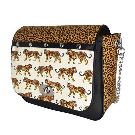 Sac à main bandoulière chaîne argent LEO TIGER