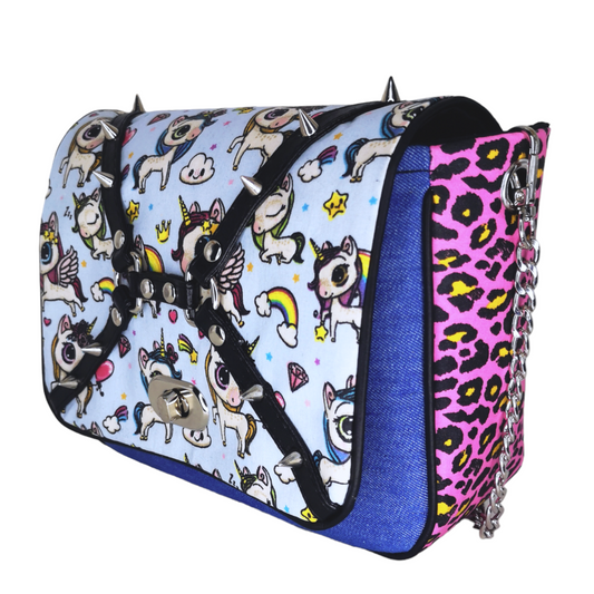Sac à main bandoulière licorne et léopard fuchsia CRAZY UNICORN